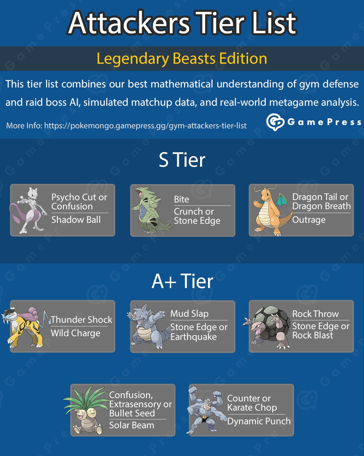 Pokemon go attacker tier list. For reference go to attacks. We will update it eventually but we believe tier lists are pretty low value for users and this is a low priority compared to other updates. Can handle different types of pokemon. Pokemon go attacker tier list best all round attackers in pokemon go. A rotating cast of legendary raid bosses can greatly influence ones perception of the best attacker at any given time. The best pokemon must be able to outlast lots of different pokemon in battle.