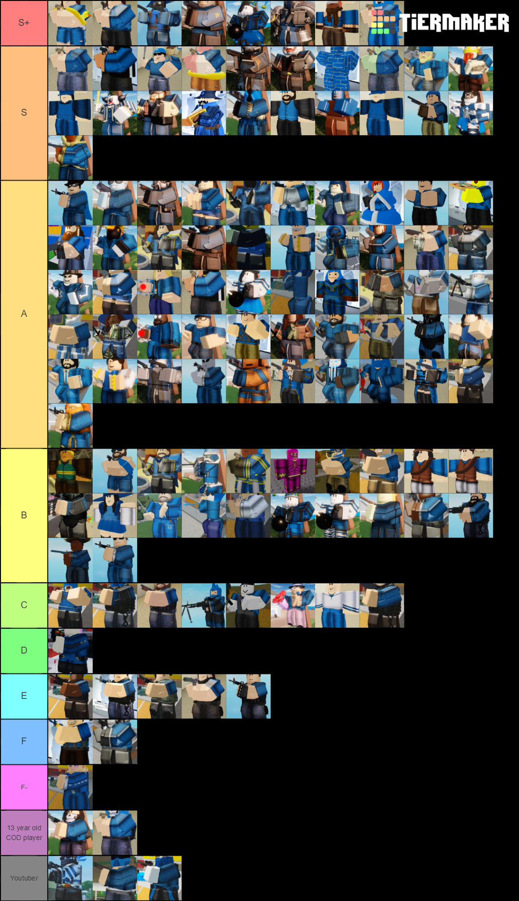 Roblox piggy maps tier list outpost update adopt me legendary pet tier. Although john roblox and rolve devs are here. S a b c d e f. Leave a reply cancel reply. Murder mystery 2 godly knifes. Quality arsenal roblox tier list.