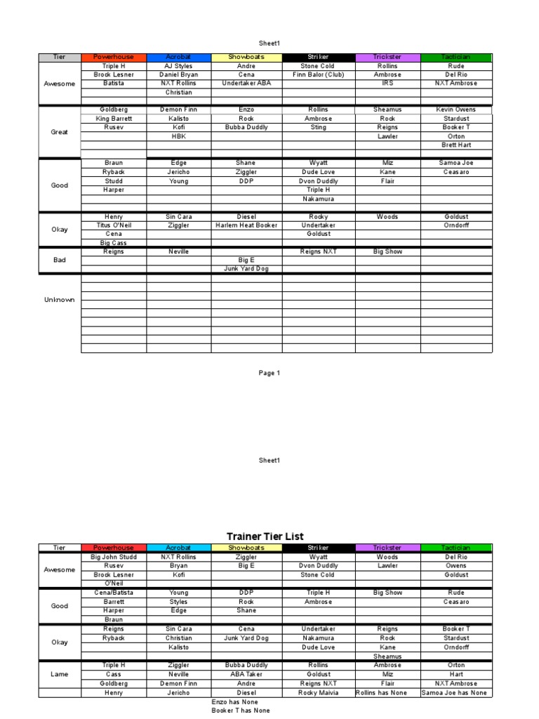 Wwe champions tier list as of 862017. Wwe champions trainer guidetier list. Wrestling tier list templates. Wwe video games. Events mega superstars pull simulator wrestlers gear list trainers list item finder gauntlet blitz faction feud stats new top builds tag team links tours. Lots of movement in the list to reflect new wrestlers and trainers 52517 added trainer tier list to replace faction feud tier list added shane omac added nakamura 42517 batista harlem heat booker t.